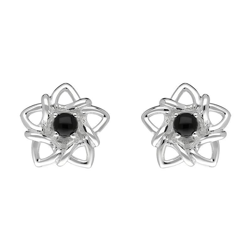 Sterling Silver Whitby Jet Open Star Flower Stud Earrings, E2566