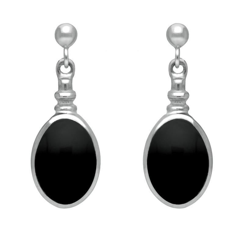 Sterling Silver Whitby Jet Oval Bottle Top Drop Earrings