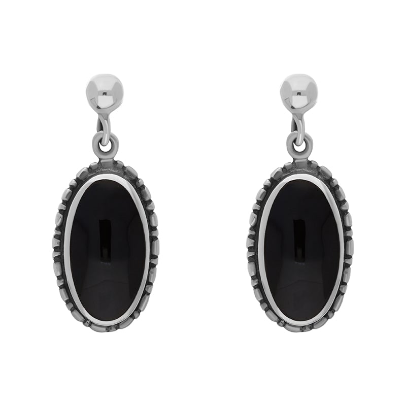 Sterling Silver Whitby Jet Oval Drop Earrings