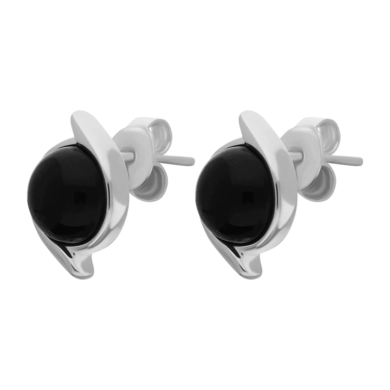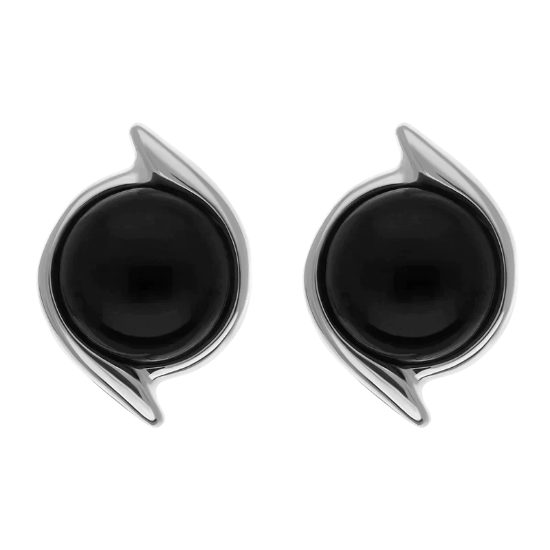 Sterling Silver Whitby Jet Round Swirl Edge Stud Earrings