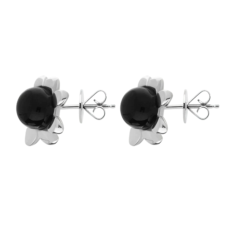 These versatile earrings feature the finest Whitby Jet, sourced directly from the north east coast of Yorkshire. The stones are framed in Sterling Silver. These feminine earrings are perfect for everyday wear and are secured with post and butterfly fitments.