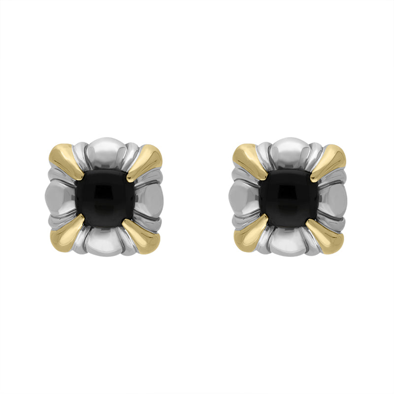 These charming sterling silver earrings, with 18ct yellow gold embellishments, feature the finest Whitby Jet, sourced directly from the north east coast of Yorkshire. The striking Whitby Jet creates a stunning contrast between the sterling silver making the perfect earrings for someone looking for a beautifully unique item of jewellery.