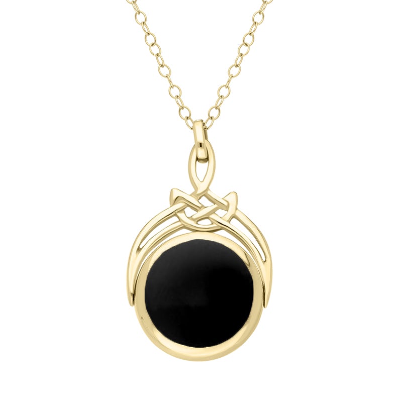 18ct Yellow Gold Whitby Jet Blue John Round Swivel Fob Necklace, P258_12.