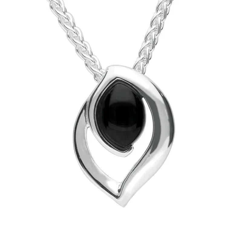 Sterling Silver Whitby Jet Marquise Flame Necklace