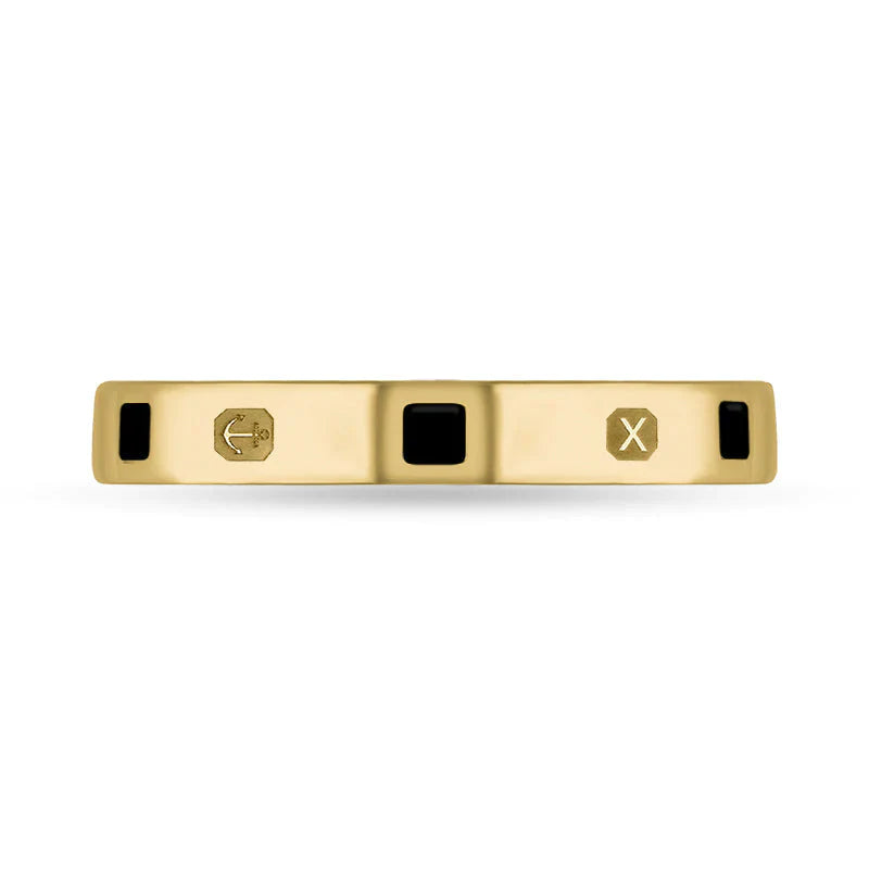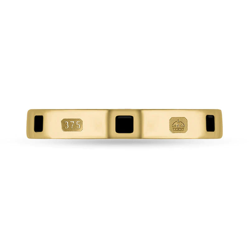 • 9ct Yellow Gold Whitby Jet Queen's Jubilee Hallmark Princess Cut 3mm Ring D - R1199_3_JFH (JFH-551)