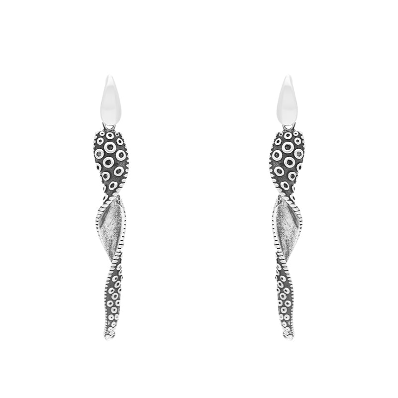 Discover our beautifully crafted Sea Life collection and add to it with these 18ct white gold tentacle drop earrings. Our items make the perfect gift and become treasured memories for years to come. These drop earrings contain a three-dimensional twisted tentacle, featuring 18ct white gold sucker detail. This item comes complete with a 18ct white gold post and butterfly fastening.