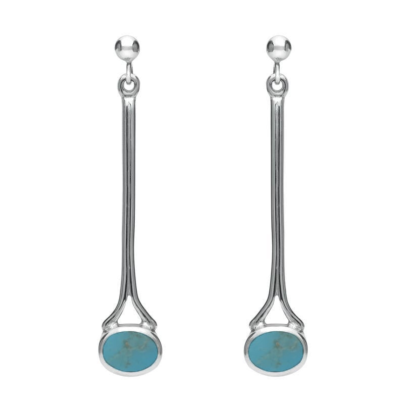 18ct White Gold Turquoise Long Drop Earrings. E094.