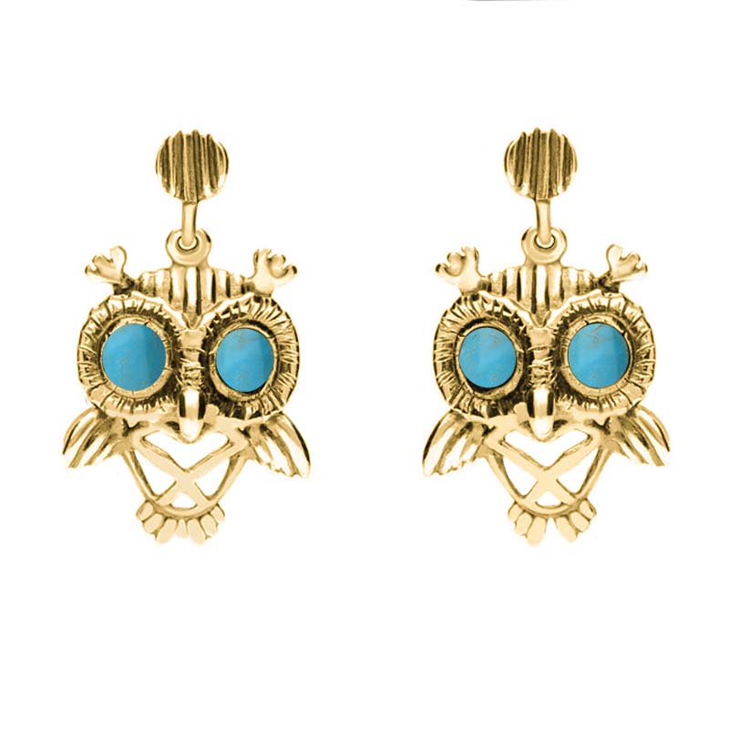 18ct Yellow Gold Turquoise Owl Stud Earrings E2329