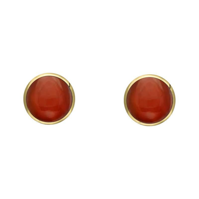 These classic stud earrings feature hand carved Carnelian stone. The highly polished stones are set with 9ct yellow gold post and butterfly fittings. Perfect for any occasion and a staple piece for your jewellery box.