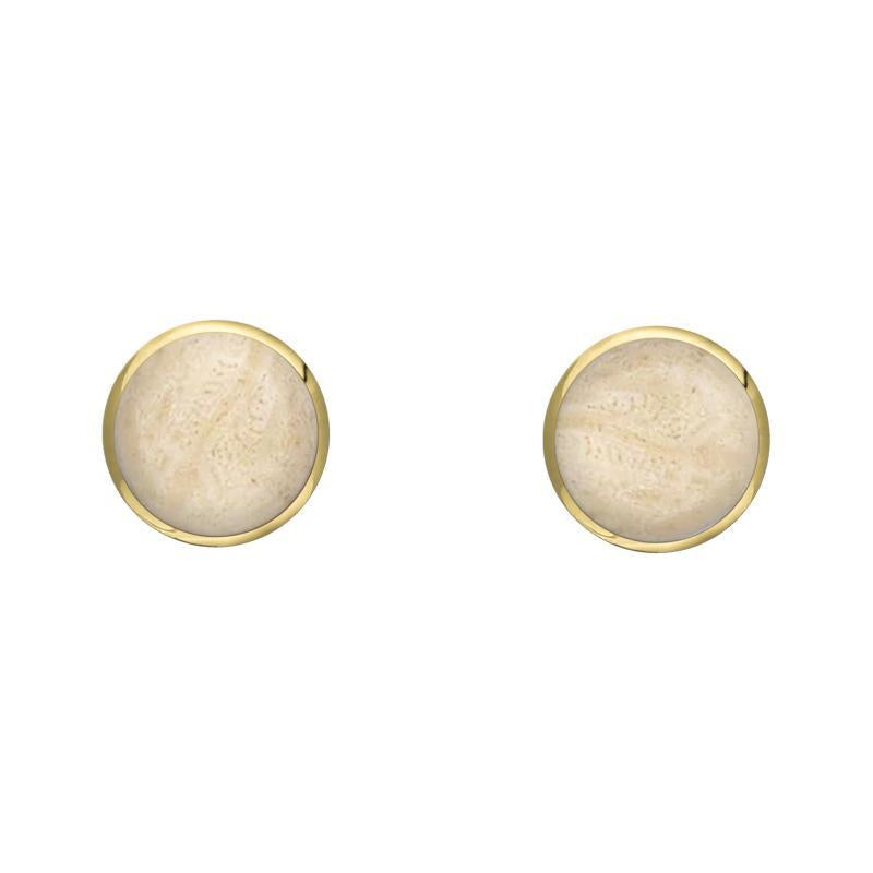 These classic stud earrings feature hand carved Coquina stone. The highly polished stones are set with 9ct yellow gold post and butterfly fittings. Perfect for any occasion and a staple piece for your jewellery box.