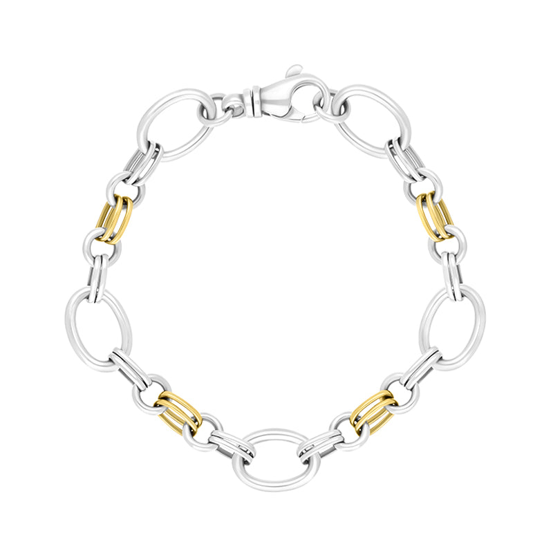 9ct Yellow Gold Sterling Silver Double Link Handmade Bracelet C057BR