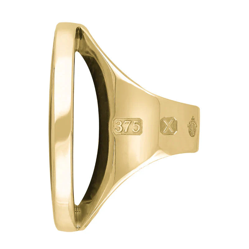 9ct Yellow Gold Whitby Jet Queen's Jubilee Hallmark Large Round Ring, R611_JFH.