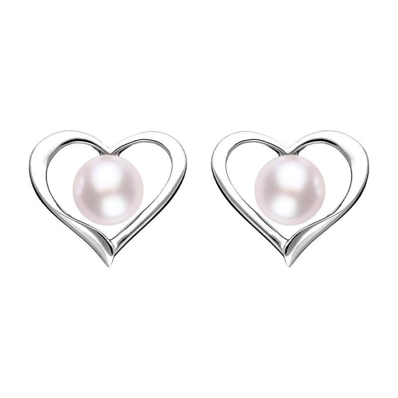 Sterling Silver Pink Pearl Open Heart Stud Earrings AE4068PFM/R