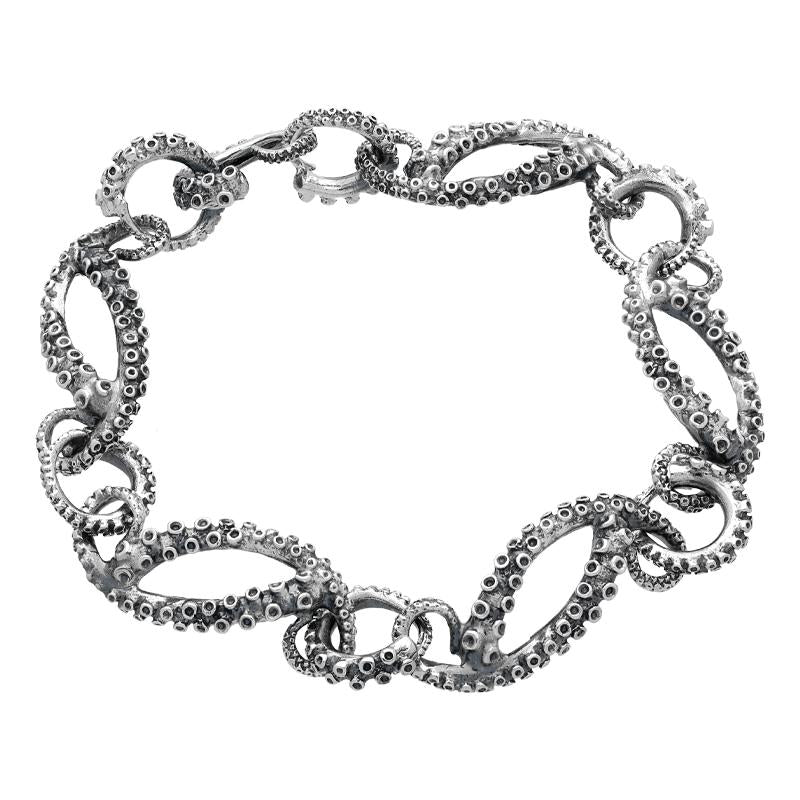 This stunning bracelet is part of our handmade Sealife jewellery collection. The bracelet features intricately coiled tentacles on each chain link of the design. An unusual yet beautiful piece which makes the perfect gift for any sealife lovers.