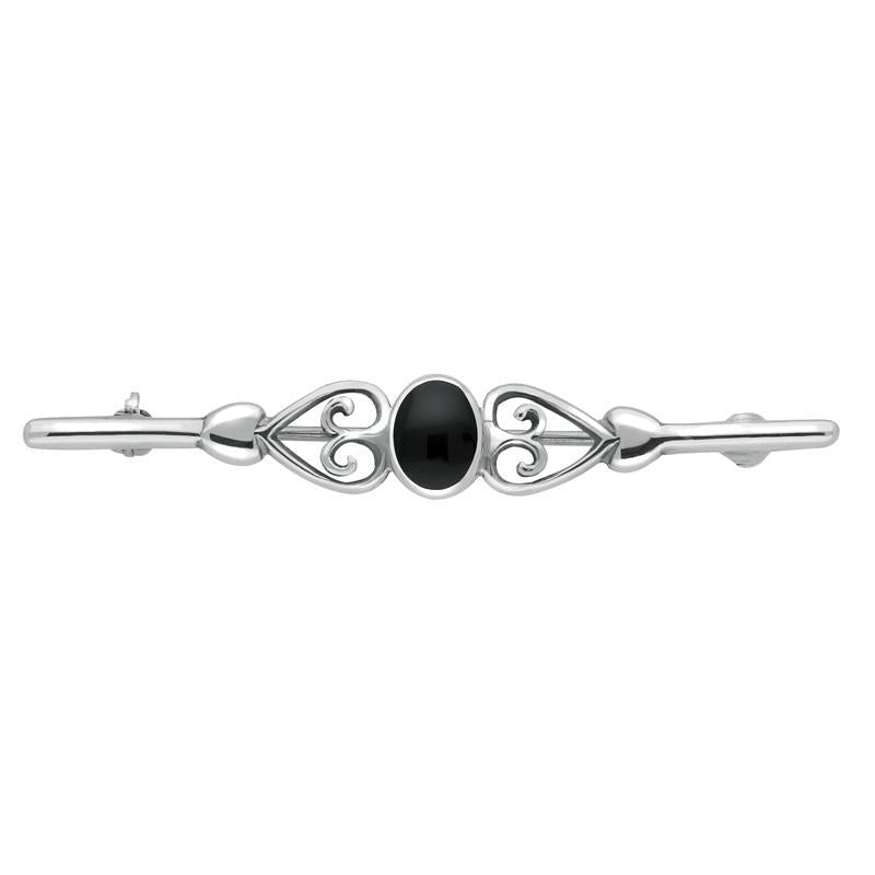 Sterling Silver Whitby Jet Heart Bar Brooch