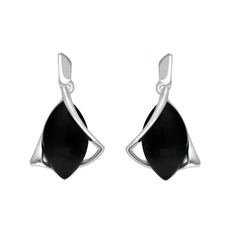 Sterling Silver Whitby Jet Marquise Open Twist Edge Drop Earrings E2534