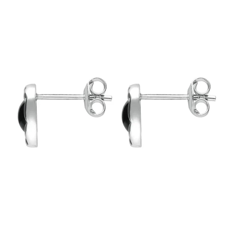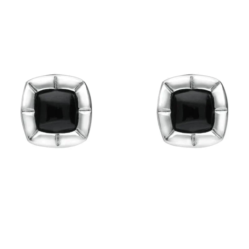 Sterling Silver Whitby Jet Ridged Cushion Stud Earrings