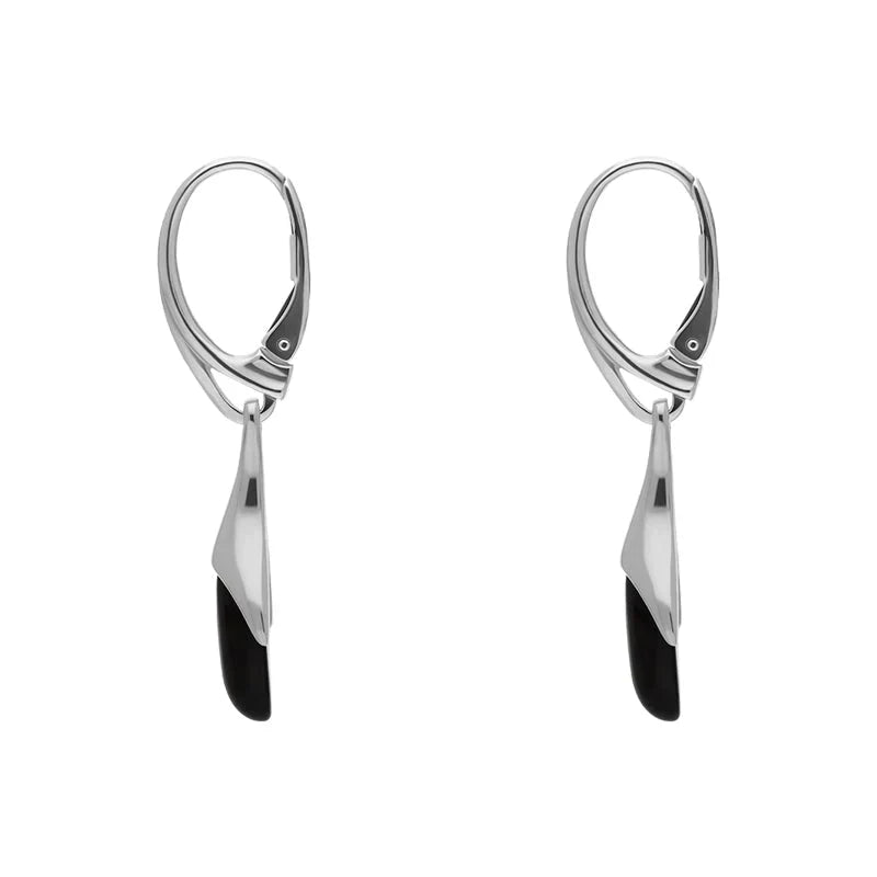 Sterling Silver Whitby Jet Tapered Marquise Drop Earrings