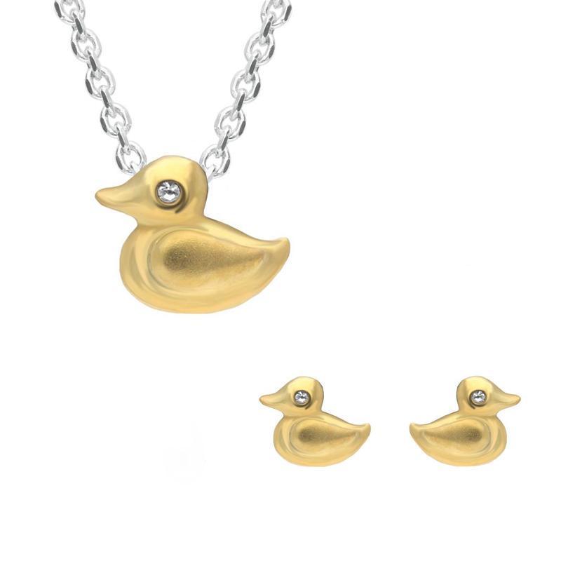 Sterling Silver Yellow Gold Plated Cubic Zirconia Duck Two Piece Set