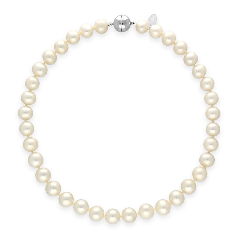 This stunning necklace features 10mm, round white pearls strung together with a 12mm sterling silver magnetic ball clasp, for ease and added security. A classic and beautiful addition to any jewellery collection, perfect for every day wear.