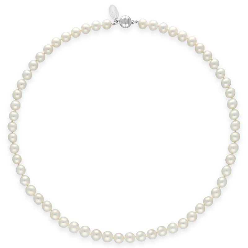 This stunning necklace features 8mm, round white pearls strung together with a 10mm sterling silver magnetic ball clasp, for ease and added security. A classic and beautiful addition to any jewellery collection, perfect for every day wear.